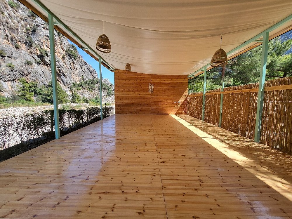 Там замечательное пространство для практики с видом на величественную скалу и комфортные условия для пребывания.